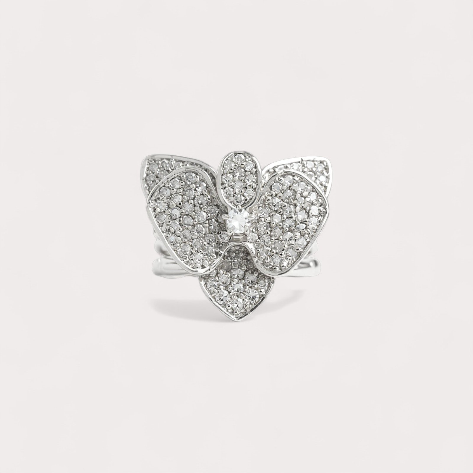 Anel sofisticado em ouro branco 18K com 0,69ct em 94 diamantes – um design refinado da Coleção Orquídea.
