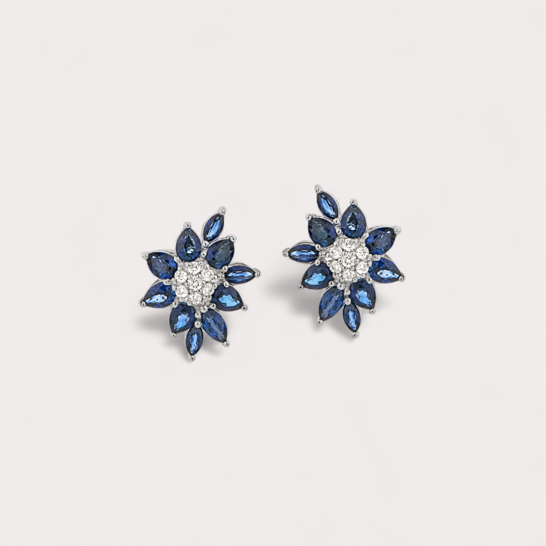 Brinco em Ouro Branco com Safiras e Diamantes