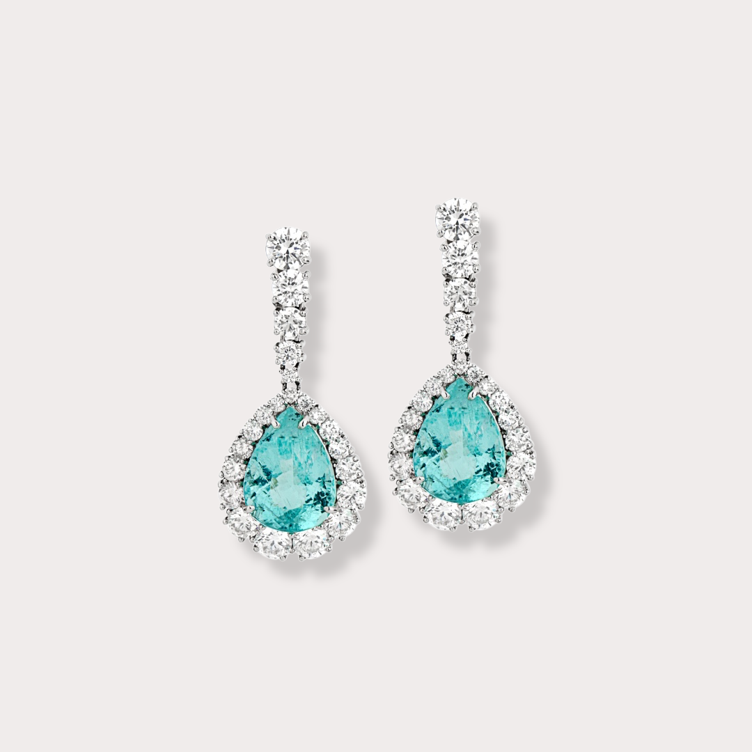 Brinco em Ouro Branco com Turmalinas Paraíba e Diamantes – Coleção Veneza